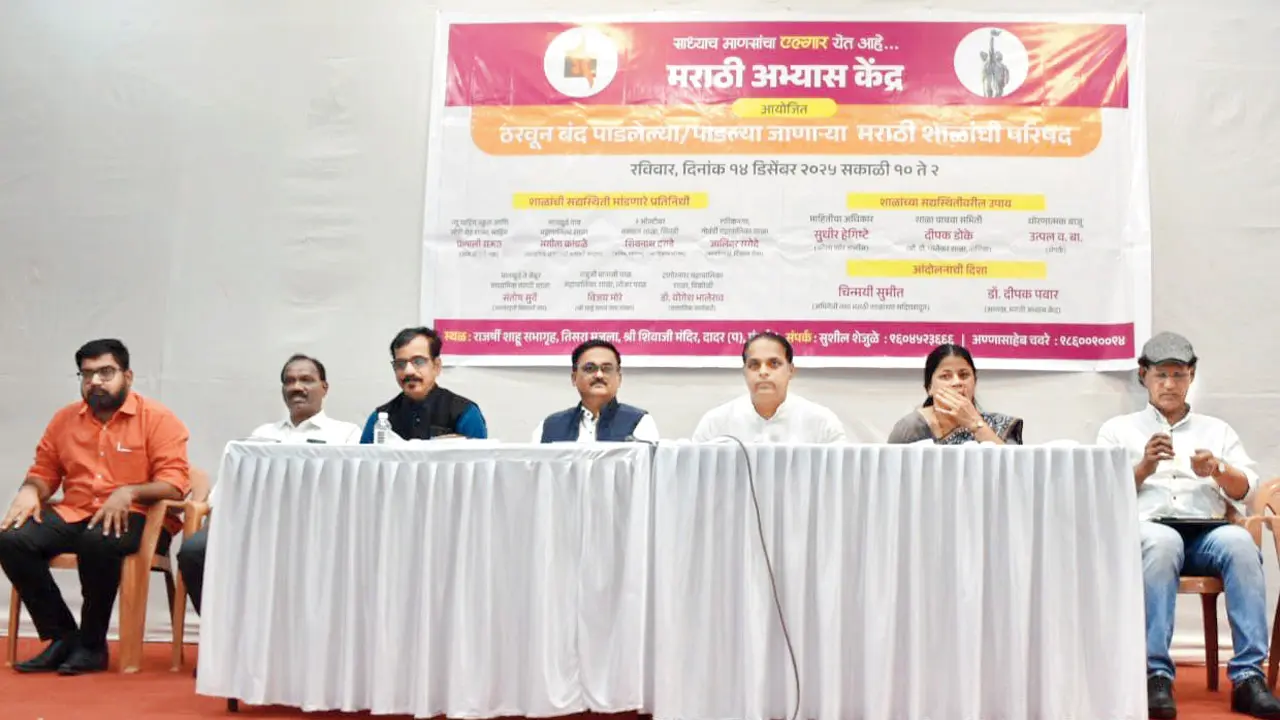 Speakers at the session highlighted factors affecting Marathi school enrolment, pointing out seven schools across Mahim, Lower Parel, Vikhroli, Mankhurd, Bhandup, Govandi, and Mumbra.