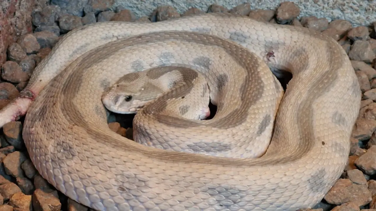 Interestingly, the viper displayed an unusual white coloration due to a lack of melanin pigment — indicating a possible case of partial albinism or leucism. Such light-coloured or white morphs are extremely rare in wild snakes.